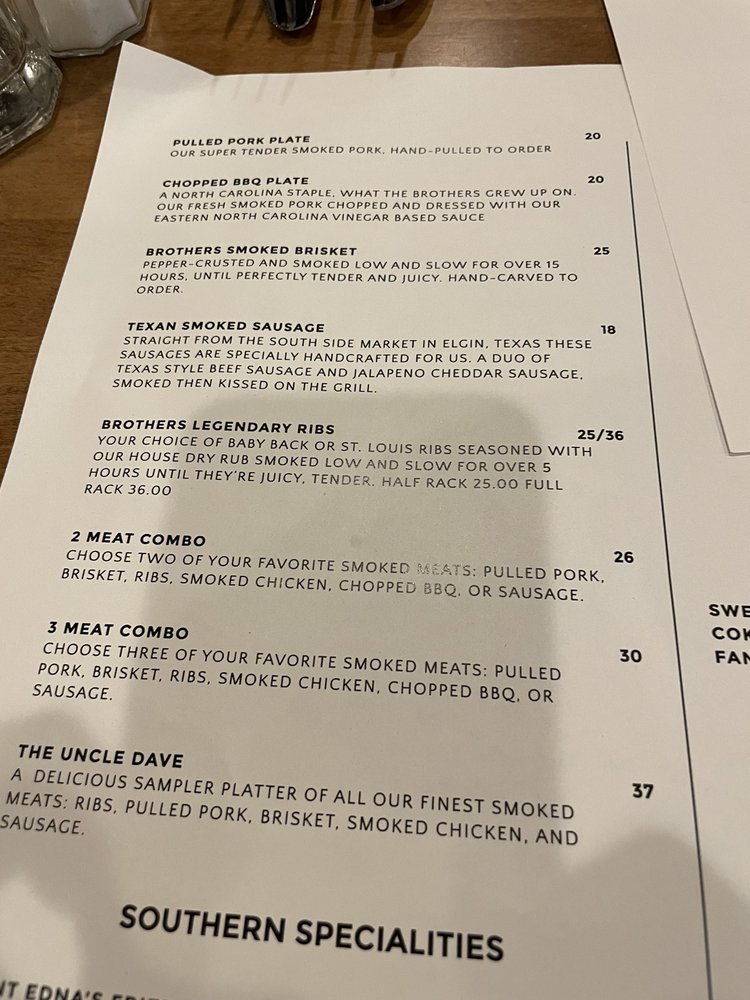 Just like our Great Aunt Edna used to make for us, its crispy, juicy, and fried to order, a brothers favorite served with your choice of two sides